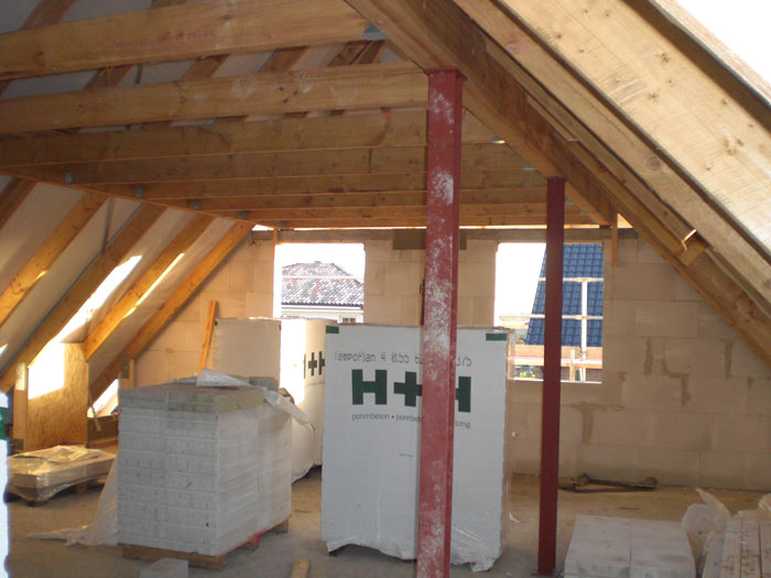 mit den Innenwänden im Dachgeschoss angefangen, diese wollen sie morgen