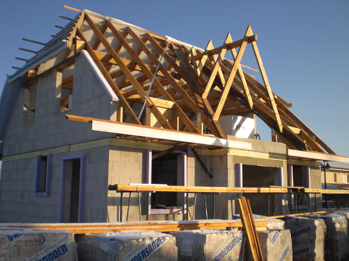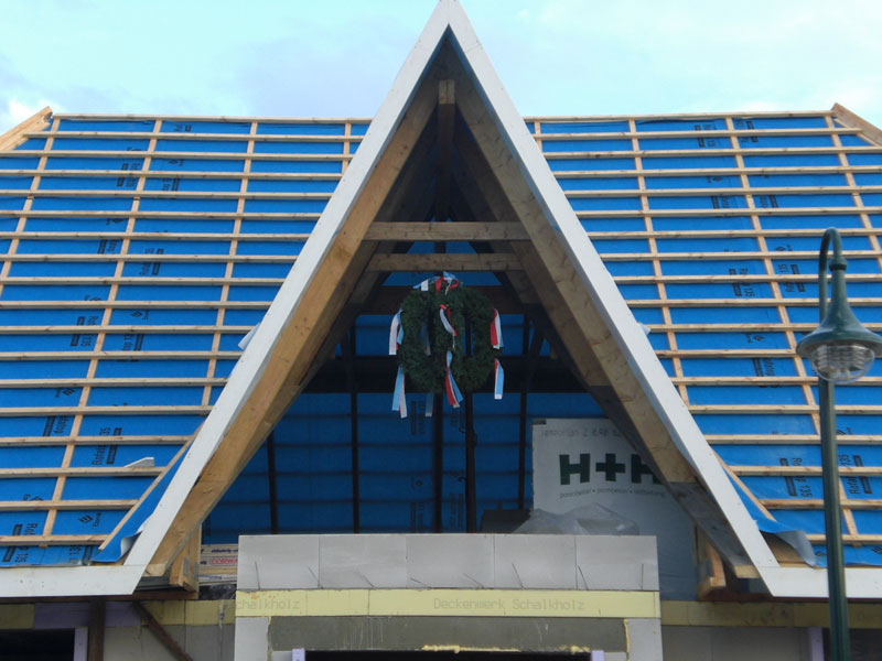 heute eigentlich noch komplett werden. Die rechte Giebelwand können wir