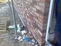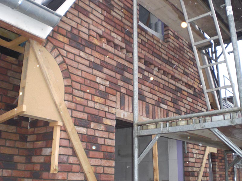 Die Maurer kommen mit dem Verblenden weiter voran. Nebenbei hat die Zimmerei noch die drei Stahlstützen im Dachgeschoß montiert. Dreiviertel des Erdgeschoßes sind nun verblendet. Wenn alles gut klappt sollten die Maurer übermorgen mit dem EG fertig sein.... wir warten ab... |