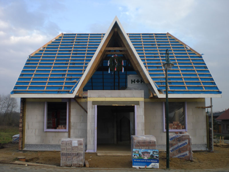 Vielen Dank für die netten Glückwunsche und Geschenke zu unserem Richtfest! Bald gibt es hier auch einige Fotos davon! P.S. Mittlerweile wurden auch schon fast beide Außenseiten des Hauses verblendet. | ||
