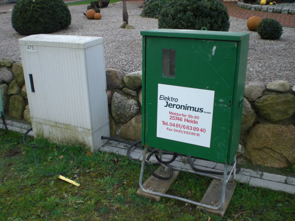 | 29.10.2008 | Baustrom ist da! Nebenbei noch ein Foto vom freigelegten Grenzstein und von unserem Hydranten fürs Bauwasser... ;-) Unsere Baufreunde Familie Wendt haben momentan etwas Ärger, schaut doch mal bei denen rein: http://bautagebuch.online-wendt.de/ |