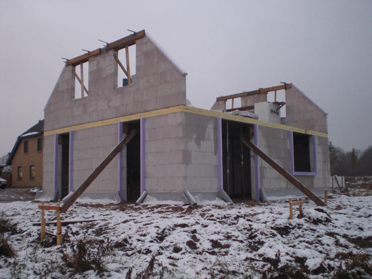 Sauwetter in Dithmarschen Aber den Maurern unseren Respekt: Die beiden Giebel im Dachgeschoß sind schon fertig. Mal sehen, ob morgen der Frontspieß dran ist... Schön dass wir ganz in der Nähe wohnen und arbeiten, so können wir mehrmals täglich vorbeischauen und nach dem Rechten schauen... ;-) Richtfest: Von unseren ca. 80 Einladungen haben bereits 36 Leute zugesagt... |