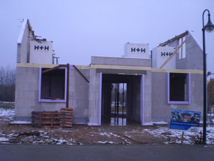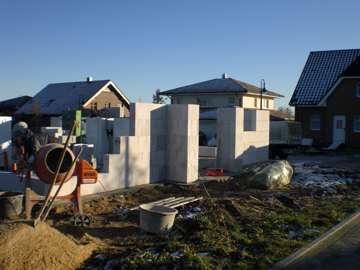 Maurerarbeiten.... Nachtrag: Unser Bauleiter Herr Glantz rief heute Abend noch an und teilte uns einige wichtige Daten mit: Die Steine für das Mauerwerk sollen am Montag, den 17.11. geliefert werden, die Maurer sollten dann auch gleich Dienstag mit ihrem Werk beginnen. Die Betondecke ist für Mittwoch, den 26.11. terminiert. Die Giebelmauern im DG sollen in der Woche ab 1.12. (49. KW) erstellt werden, das Richten des Dachstuhl samt Richtfest soll dann in der Woche an 8.12. (50. KW) stattfinden! |