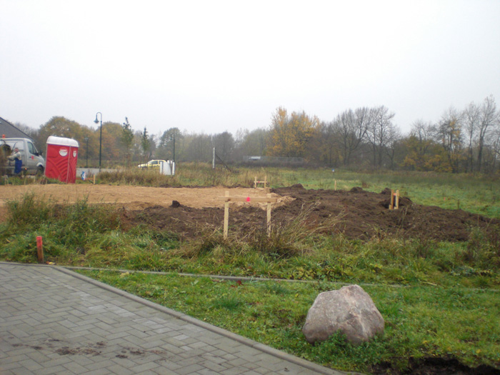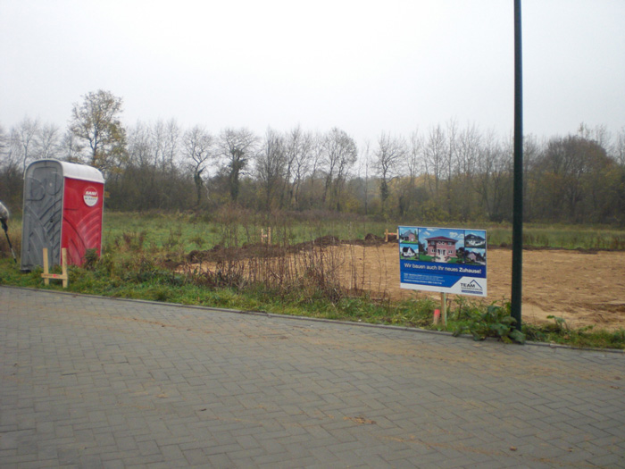| 27.10.2008 | Anruf vom Bauleiter, es soll losgehen! Unser Bauleiter Herr Glantz hat sich heute telefonisch bei uns gemeldet. Am Donnerstag, 30.10. wird das Gebäude auf dem Grundstück abgesteckt. Eigentlich sollte auch das Bauanlaufgespräch am Donnerstag stattfinden, nur leider passt uns das terminlich nicht. Nun findet unser Treffen gemeinsam mit der Erdbaufirma und dem Maurer am Montag, den 3. November um 11 Uhr am Grundstück statt. Mittwoch wird der Baustromkasten installiert, einen Tag später dann das Bauwasser. Die Grenzsteine wurden ja bereits vom Vermesser freigelegt. Na, dann mal los... |