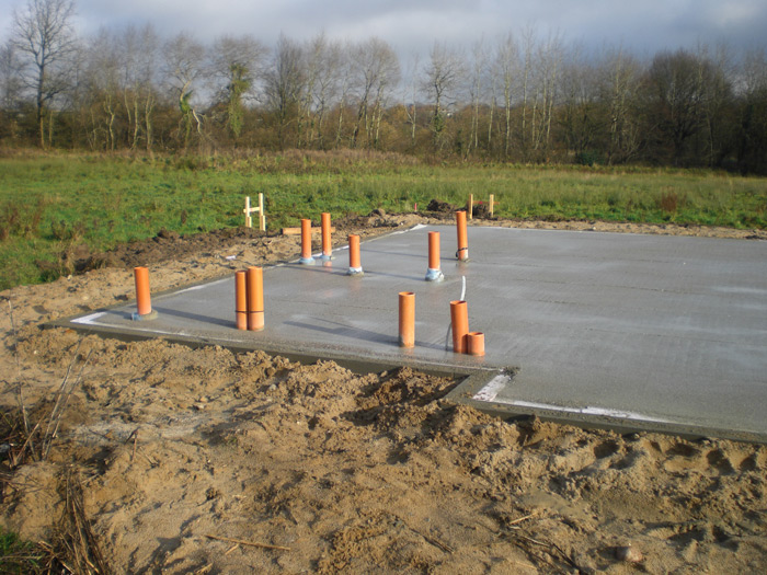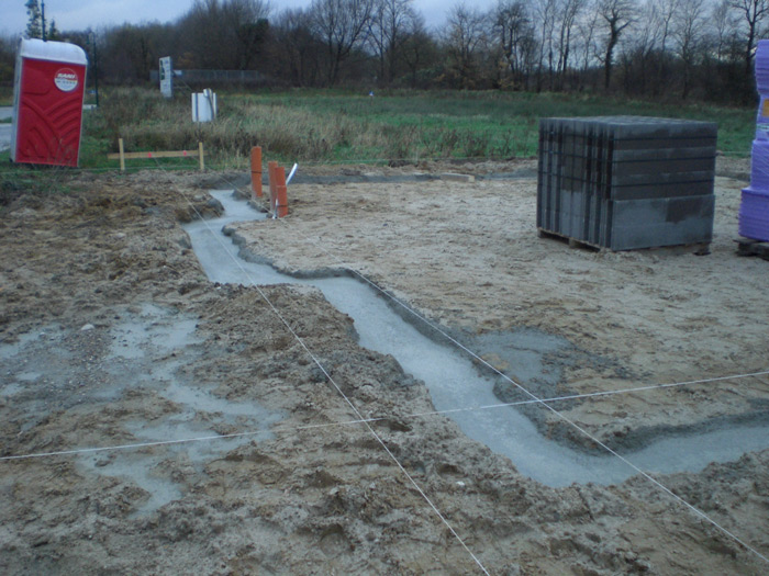 Das Fundament / Sohle mit den Entwässerungsrohren wurde fertiggestellt. | ||