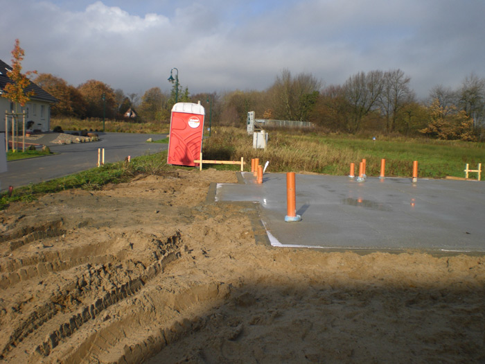 | 01.08.2008 | Der erste Schock -> Für die Erdarbeiten sollen wir nun 1900 Euro Aufpreis zahlen! Es muss ein 80cm anstatt 30cm Bodenaushub erfolgen. Na tolle Sache! Woher das Geld nehmen, wenn nicht stehlen! (Da hätte uns Team vielleicht vorher etwas besser informieren sollen) | ||