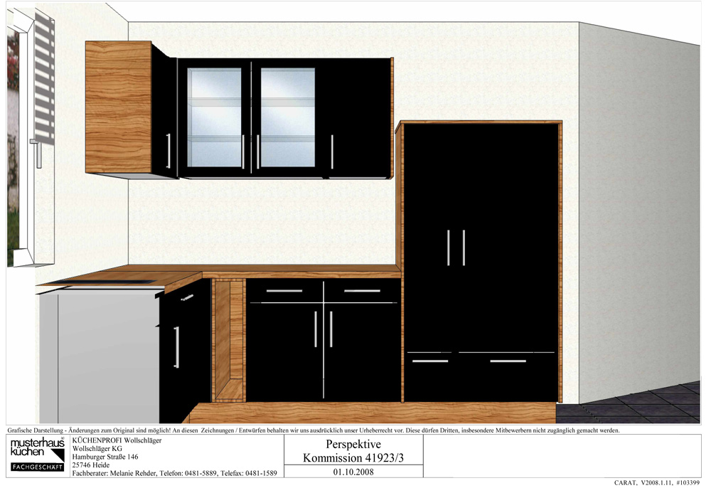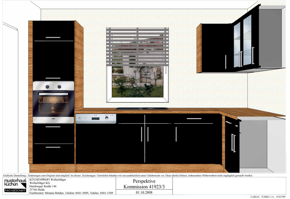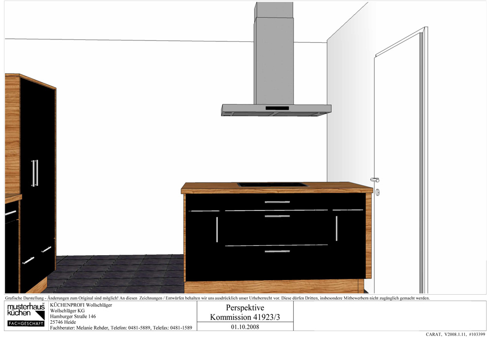 | 06.09.2008 | Termin bei Küchen-Aktuell: Heute waren wir bei der Fa. Küchen-Aktuell in HH/Halstenbeck zum Küchen schauen. Mit einem Berater haben wir dann gute 4 Stunden gesprochen und geplant. Herausgekommen ist ein Preis von 6600 Euro. Mit Kochinsellösung in schwarz Hochglanz mit Zwetschgen Korpus und Sockel. Bis auf die Einbau-Mikrowelle ist eigentlich alles dabei. War eine gute Beratung. Den Endpreis von 7601,- Euro hat der Berater ohne Nachfrage von uns auf 6600 Euro reduziert. Schon komisch ohne das wir gefragt haben... Jedenfalls sind wir nun "nur" noch 2600 Euro über unserem Budget. Wir wissen aber immer noch nicht wie wir uns entscheiden sollen... | ||